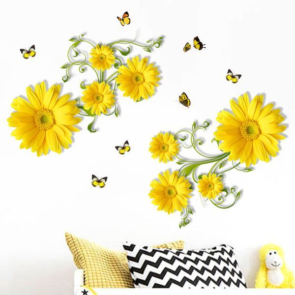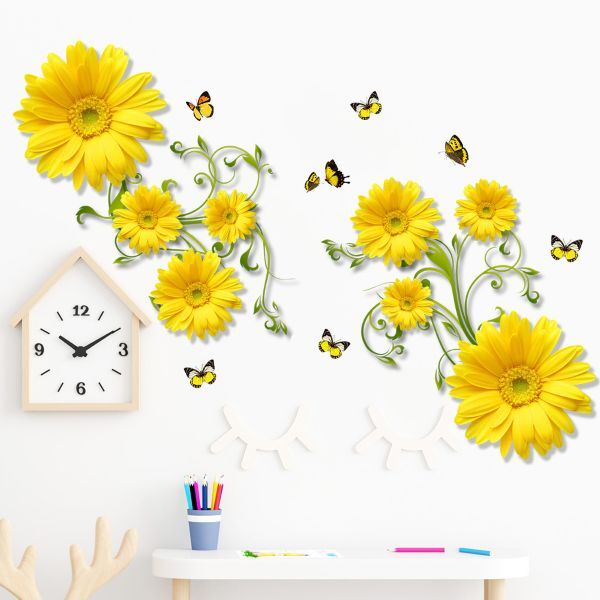 Жовто-гарячі квіти і грайливі метелики стануть акцентною прикрасою для вашої домівки. Наліпки миттєво оживляють будь-який простір і підіймають настрій навіть у похмуру погоду