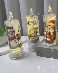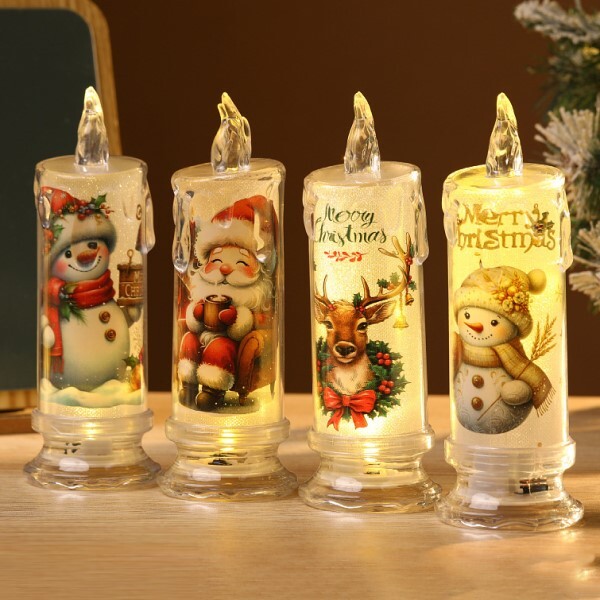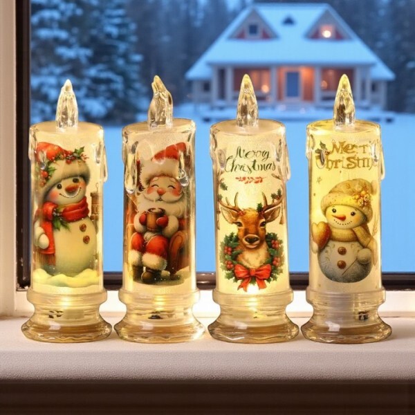 Лед свічки на батарейках 4 шт із новорічним дизайном сніговиків і Санти