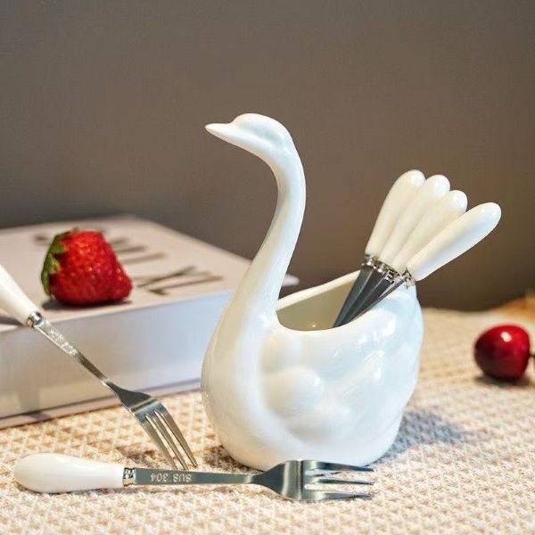Підставка для виделок у формі лебедя вражає своєю елегантністю та неодмінно привертає увагу гостей. Аксесуар стане гарною окрасою столу і стильним декором для кухні чи вітальні