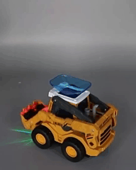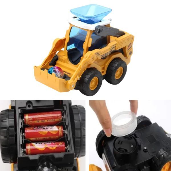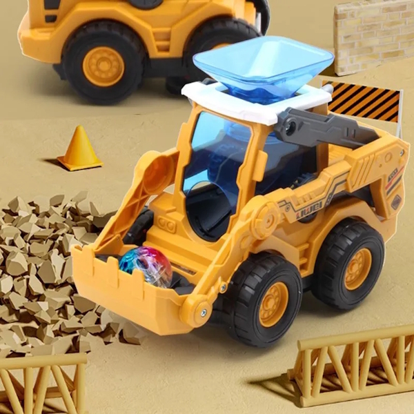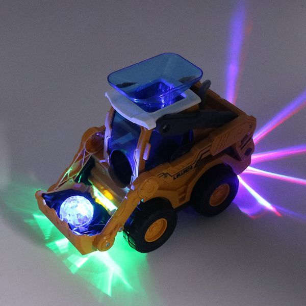 Іграшка оснащена кольоровими миготливими вогниками, а весела музика додає грі емоційності. Екскаватор обертається на 360°, при зіткненні з перешкодою змінює напрямок руху