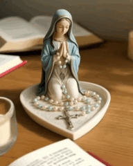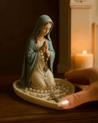 Ця підставка продумана до найменших деталей: ви можете повісити вервицю на руки Марії саме в тому місці, де зупинилася молитва, щоб легко продовжити її з тієї ж намистини після перерви