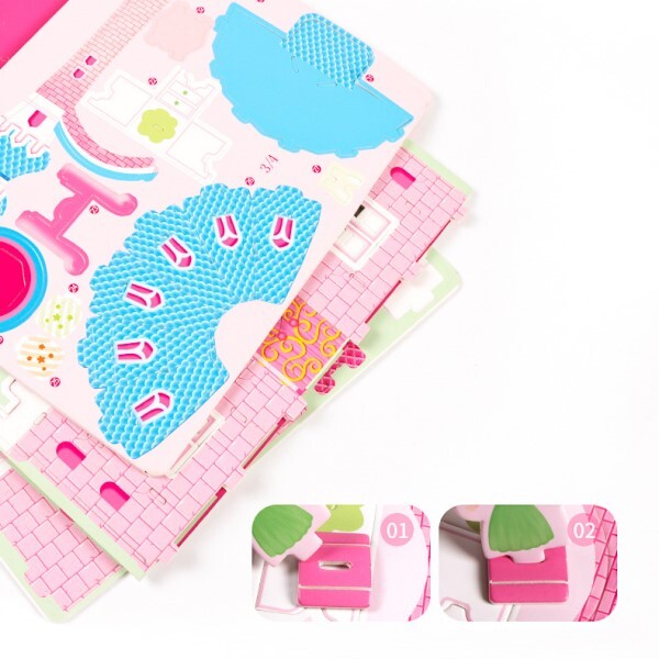 У наборі містяться об’ємні пазли для складання двох великих замків. Готові конструкції стануть чудовою декорацією дитячої кімнати та улюбленим місцем для захопливих ігор із подругами