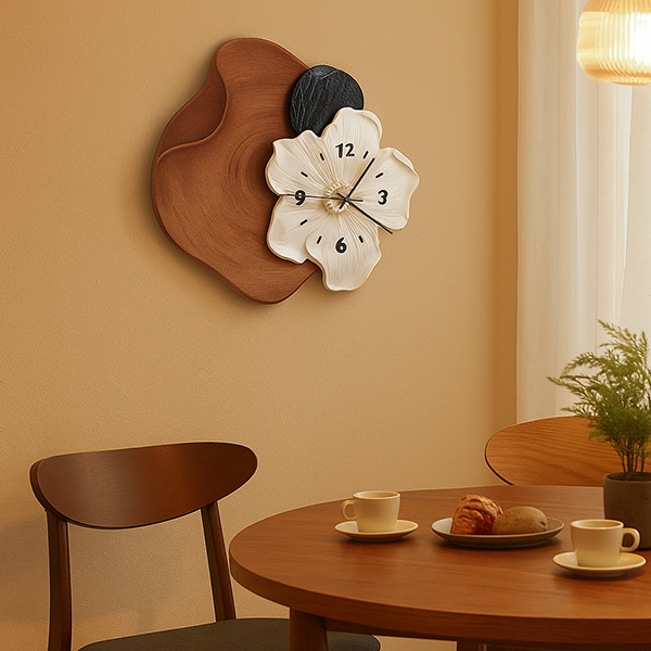 Циферблат у формі квітки, лаконічні декоративні елементи і блискуча гладка поверхня роблять годинник справжньою окрасою інтер'єру. Це чудовий презент для тих, хто цінує елегантні деталі в домі