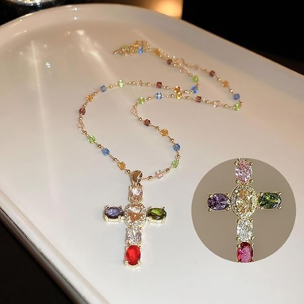 Ланцюжок і хрестик прикрашені яскравими кольоровими фіанітами, що робить прикрасу надзвичайно вишуканою. Аксесуар виділить вас з-поміж інших і додасть образу елегантності