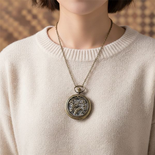 Годинник має легку вагу і компактний розмір, тож поміститься у сумці чи в кишені. А довгий ланцюжок дозволяє зручно носити аксесуар на шиї у вигляді прикраси, яка стильно доповнить будь-який образ