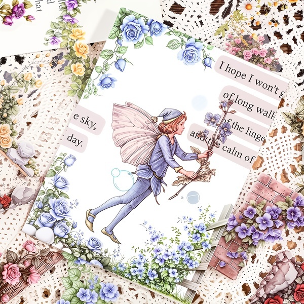 Набір містить багато кольорових наліпок різного розміру: квіти, ліхтарі, елементи цегляної кладки та інші декоративні мотиви у вінтажному стилі. Усі наліпки мають кутову форму, тому повного комплекту вистачить для численних творчих проєктів і комбінацій