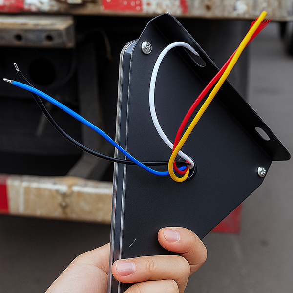 Кольорові дроти допомагають легко під’єднати ліхтар до штатної електропроводки 12 або 24 В. Металева пластина забезпечує надійну фіксацію на вантажівці чи причепі