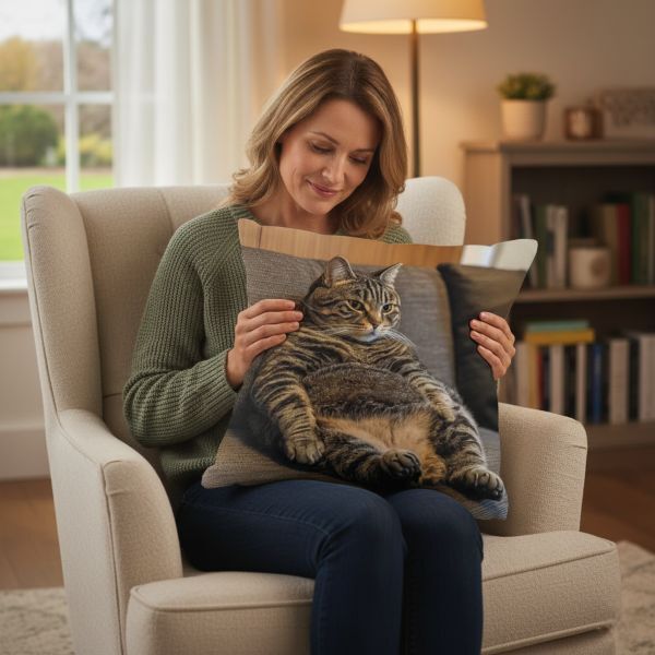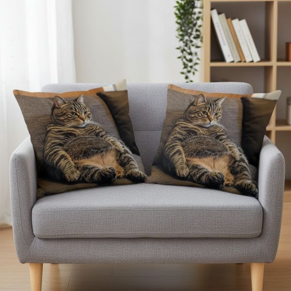 Наволочки із зображенням великого кота, що сидить у розслабленій позі, щодня даруватимуть усмішку та підійматимуть настрій. Це унікальний текстильний декор для будь-якої домівки