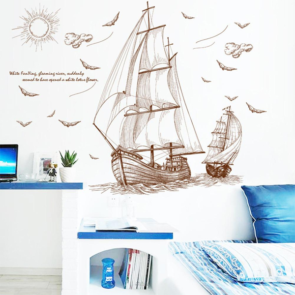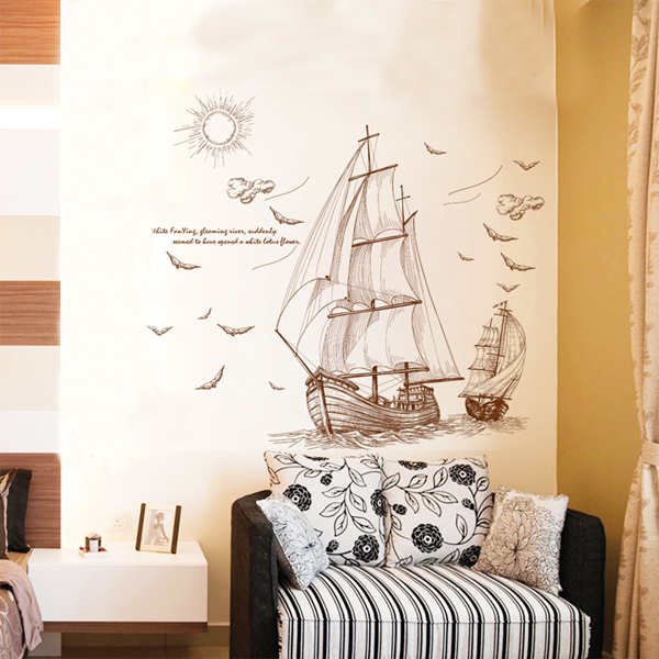 Набридли старі шпалери або нудні пофарбовані стіни, але дорогий ремонт не на часі? Велика наліпка з вітрильниками допоможе освіжити інтер'єр, додати йому ноток романтики та духу пригод, а також замаскувати потертості, плями, сколи фарби та інші недоліки. Ви зробите кімнату оригінальною, не витративши на це багато часу та грошей