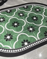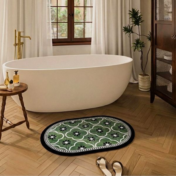 Антиковзний килимок у ванну кімнату або кухню 90 х 60 см, має елегантний візерунок у зелених і чорних тонах