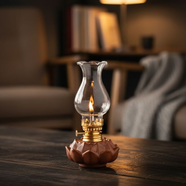 Олійна лампа виготовлена в ретростилі, працює на гасі або лампадній олії