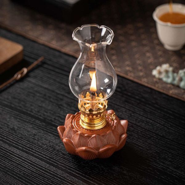 Лампа працює на гасі чи лампадній олії, що не має неприємного запаху й ефекту коптіння. Налийте рідину в отвір на підставці, підпаліть ґніт і накрийте плафоном. Висоту полум'я можна легко регулювати
