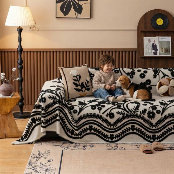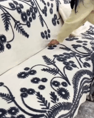 Покривало миттєво освіжає вигляд меблів, приховуючи старі потертості та надаючи їм доглянутого вигляду. Флористичний орнамент додає простору затишної атмосфери
