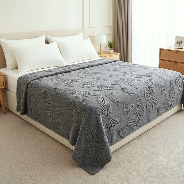 Плед — це практичне рішення для створення затишної атмосфери у вітальні чи спальні. Сірий відтінок поєднується з будь-яким інтер’єром, надаючи меблям доглянутого вигляду
