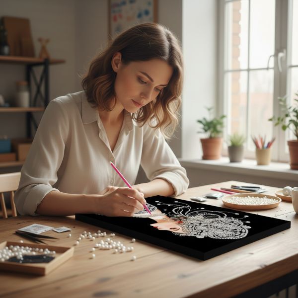Перлинна мозаїка під силу навіть тим, хто вперше пробує цей вид творчості. Чіткі позначки на полотні та зручний стилус для наклеювання намистин допоможуть легко впоратися з декоруванням