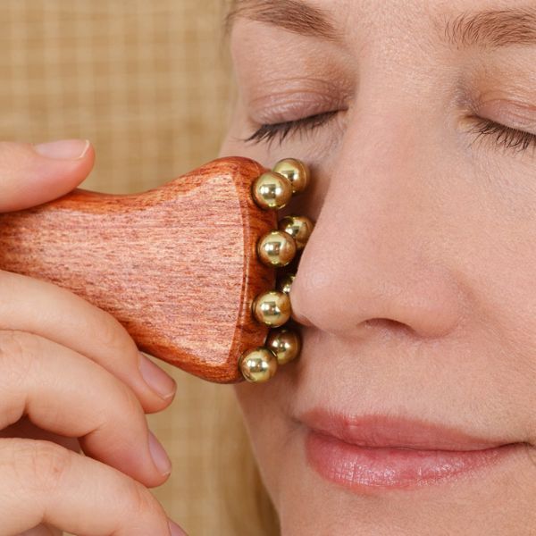 З одного боку масажера розташовано 12 латунних кульок, з іншого — 8, що дозволяє варіювати інтенсивність масажу. Така форма зручна для опрацювання різних зон обличчя, шиї та тіла